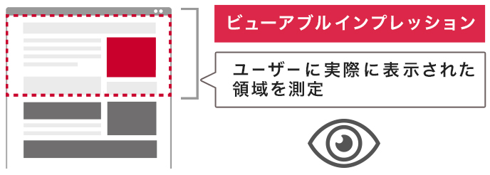 Google は「視認範囲の表示回数」と呼ばれ、ユーザーの目に見える範囲にディスプレイ広告の表示回数に関する指標です。