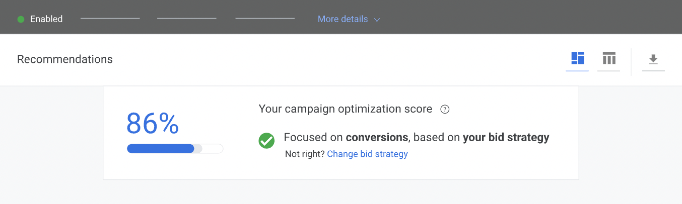 どちらのスコアも、キャンペーンの効果を向上させるための実用的なフィードバックを提供することを目的としていますが、最適化スコアではアカウントの健全性をより総合的に把握することができます。