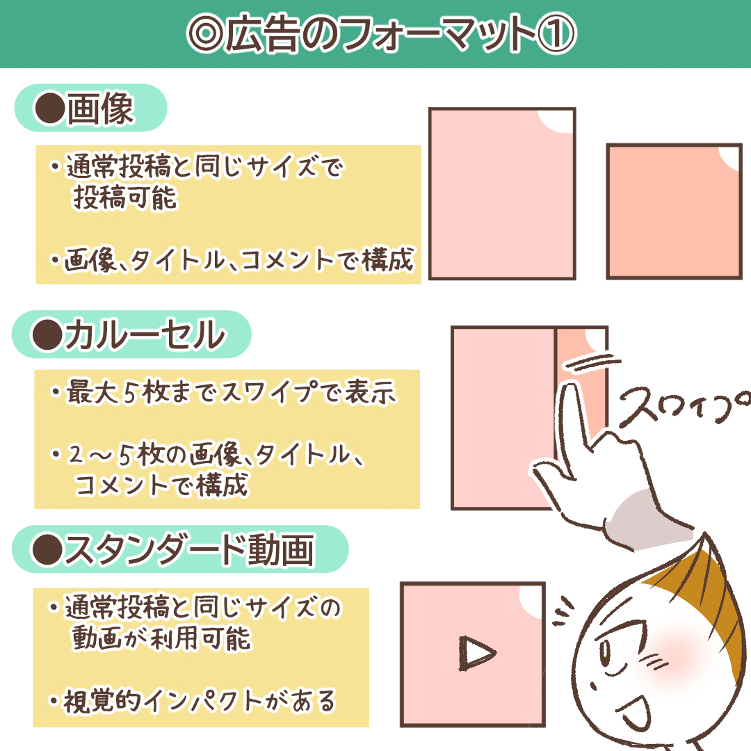 コンバージョン獲得の成否は、商材の魅力を最大限に伝え、ユーザーの行動を喚起するフォーマットを選択できるかにかかっています。ここでは主要な7つのフォーマットについて、その仕様と獲得に向けた戦略的な活用方法を詳しく解説します。