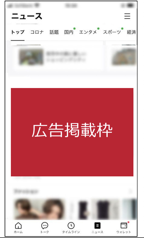 大きく分けてLINEニューストップ⾯とLINEニュース記事遷移中の広告枠かの2種になります。